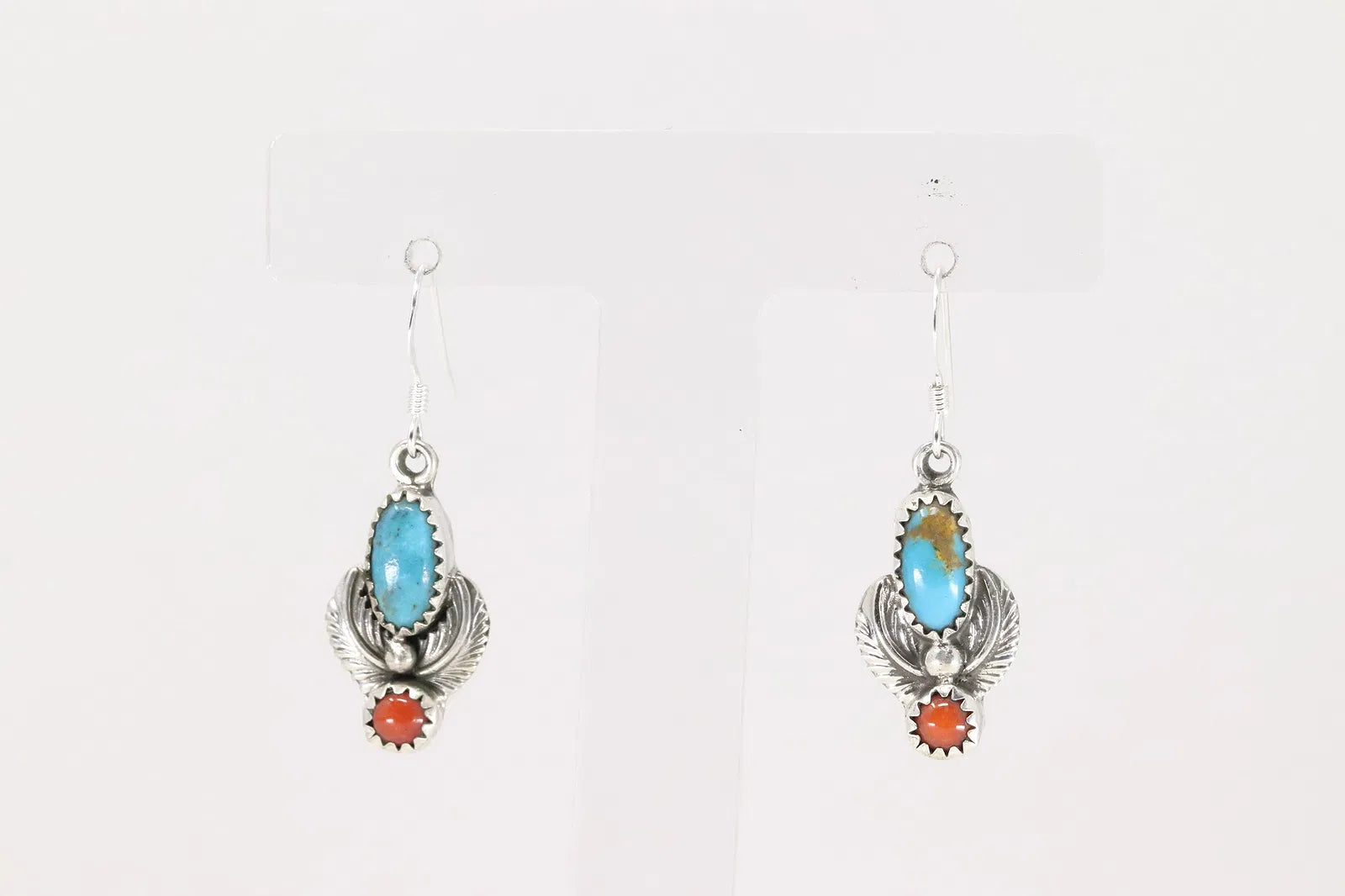 Dainty Turquoise and Coral Earrings by Navajo Artist