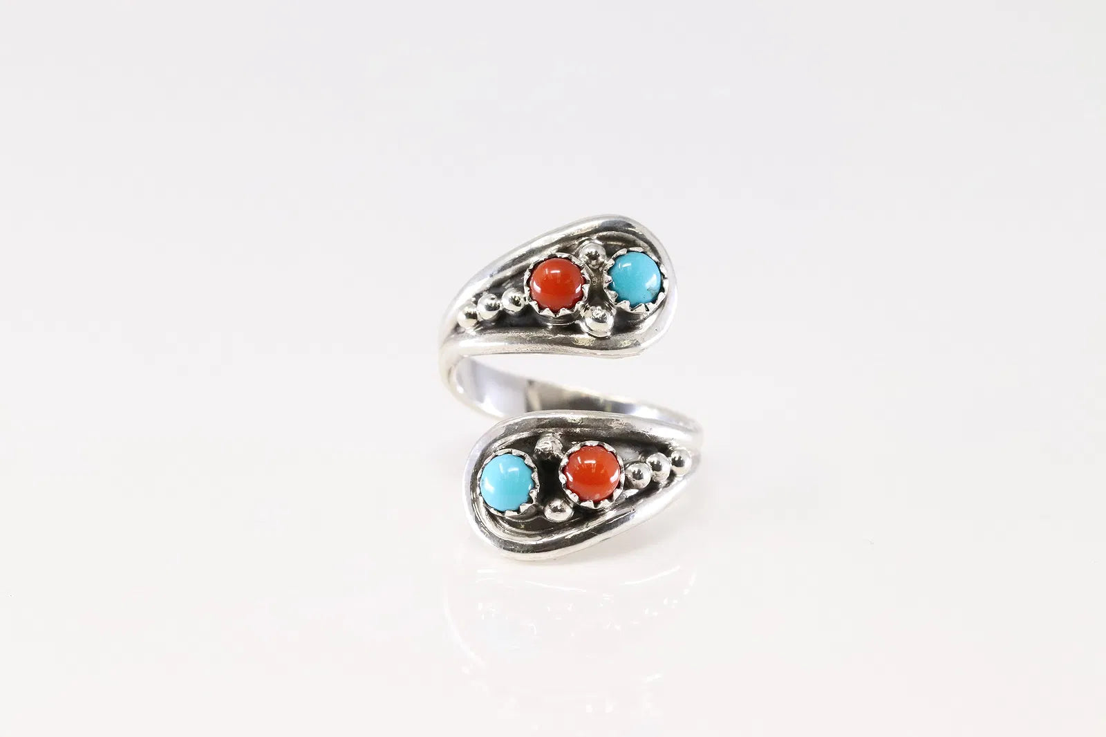 Gorgeous Turquoise and Coral adjustable ring by Navajo artist Genevieve Francisco.