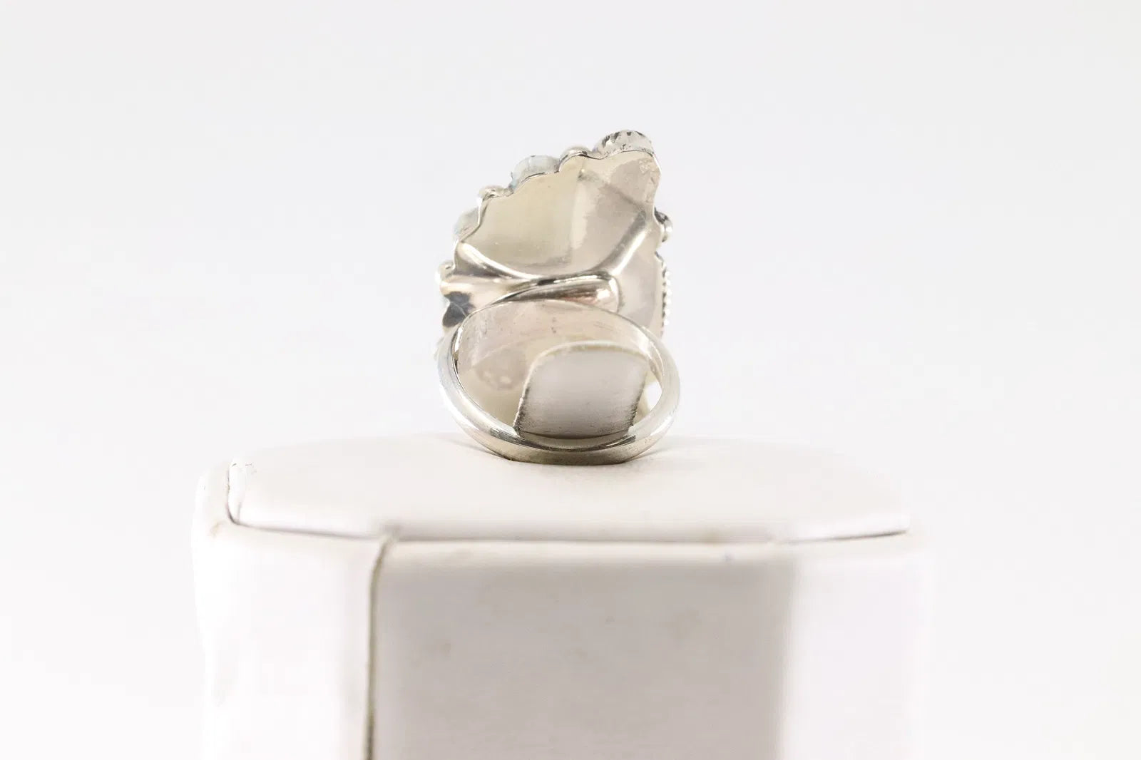 Native American Navajo Sterling Silver Kingman Turquoise Ring By Alicia Wilson. Adjustable Ring
