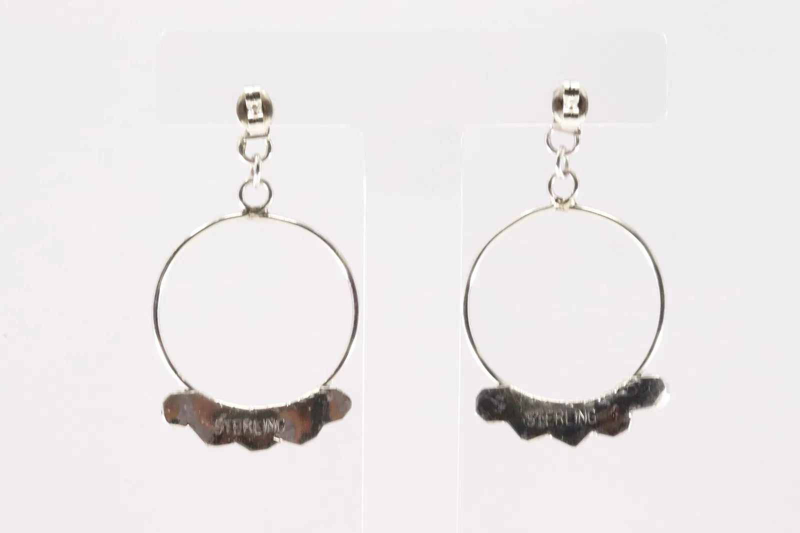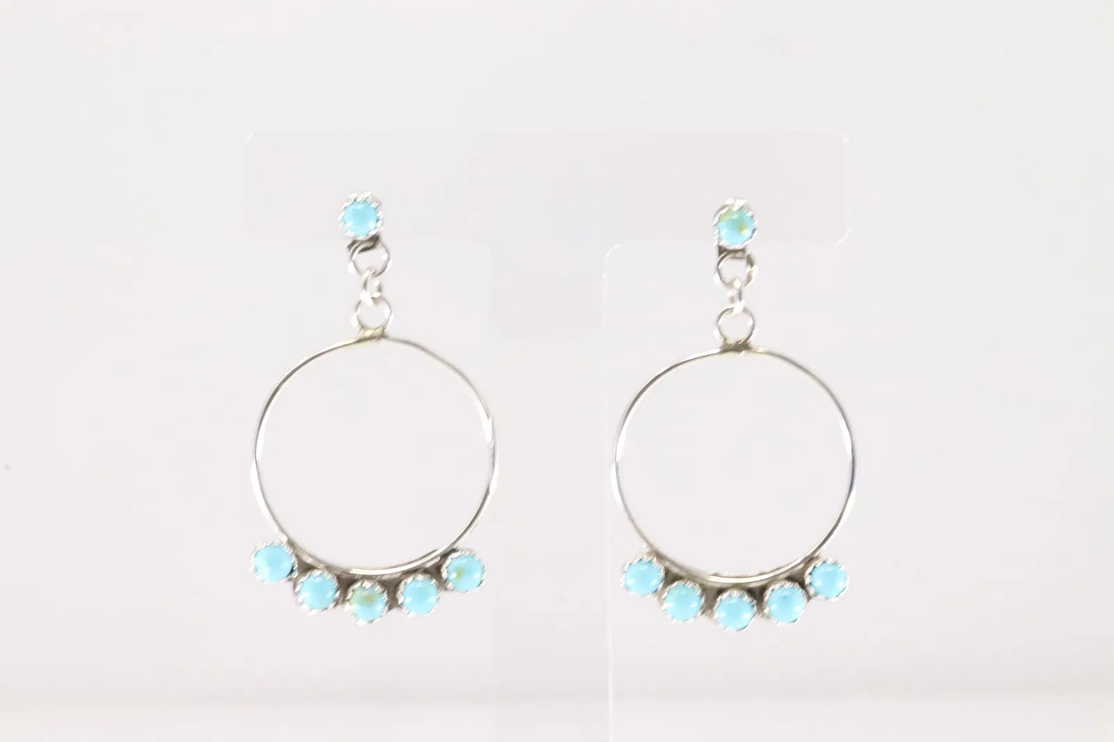 Lightweight Navajo Artist Chee Turquoise and Sterling Hoop Earrings