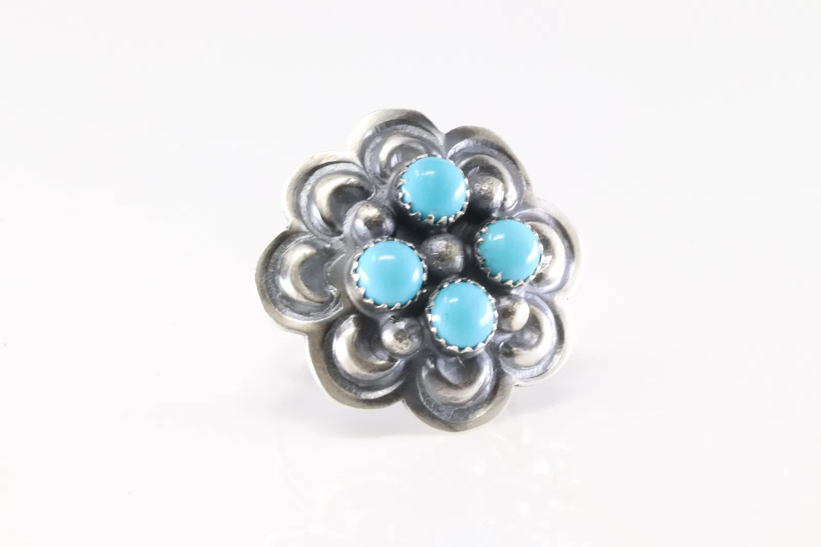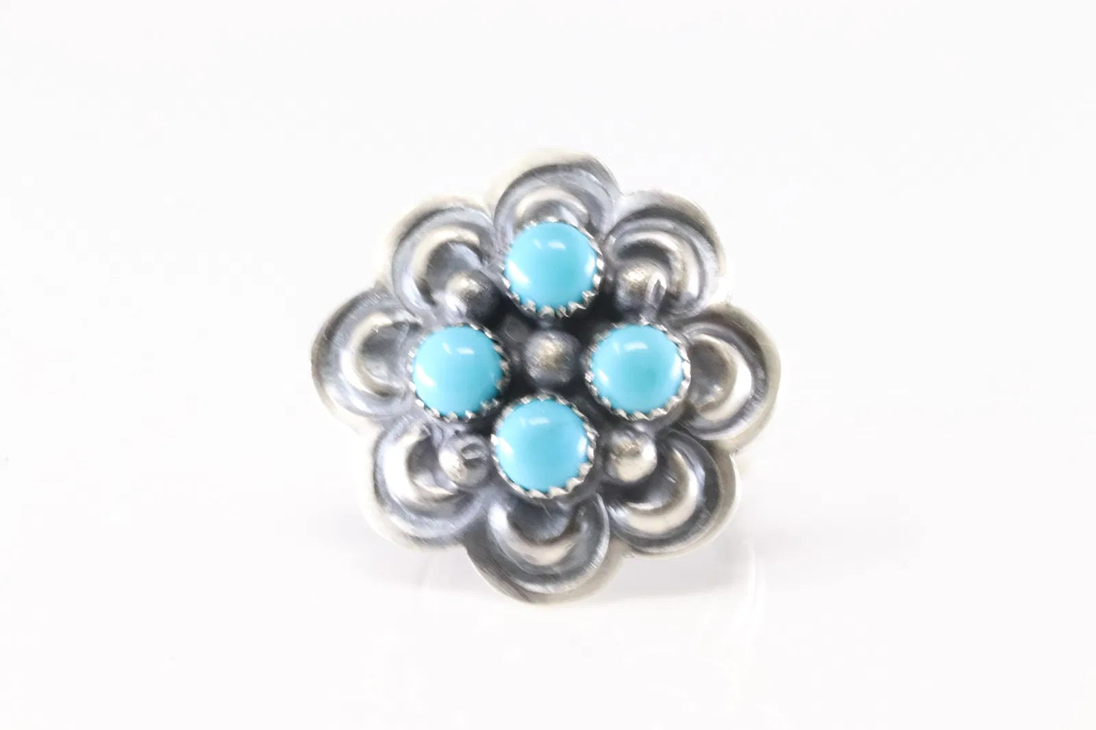 Native American Navajo Sterling Silver Turquoise Flower Adjustable Ring By T.Yazzie