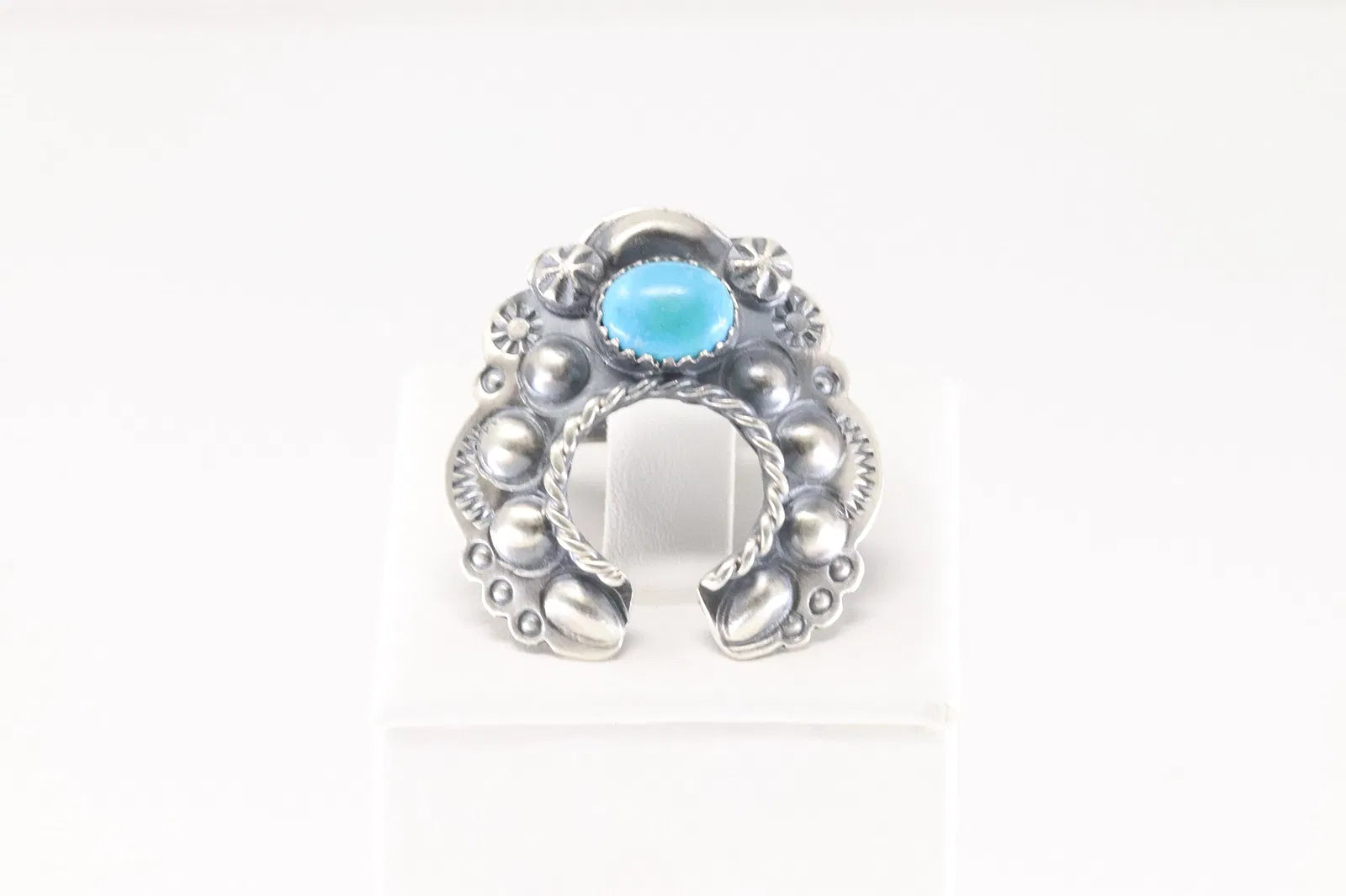 Native American Navajo Sterling Silver Turquoise Naja Ring By T.Yazzie. Adjustable