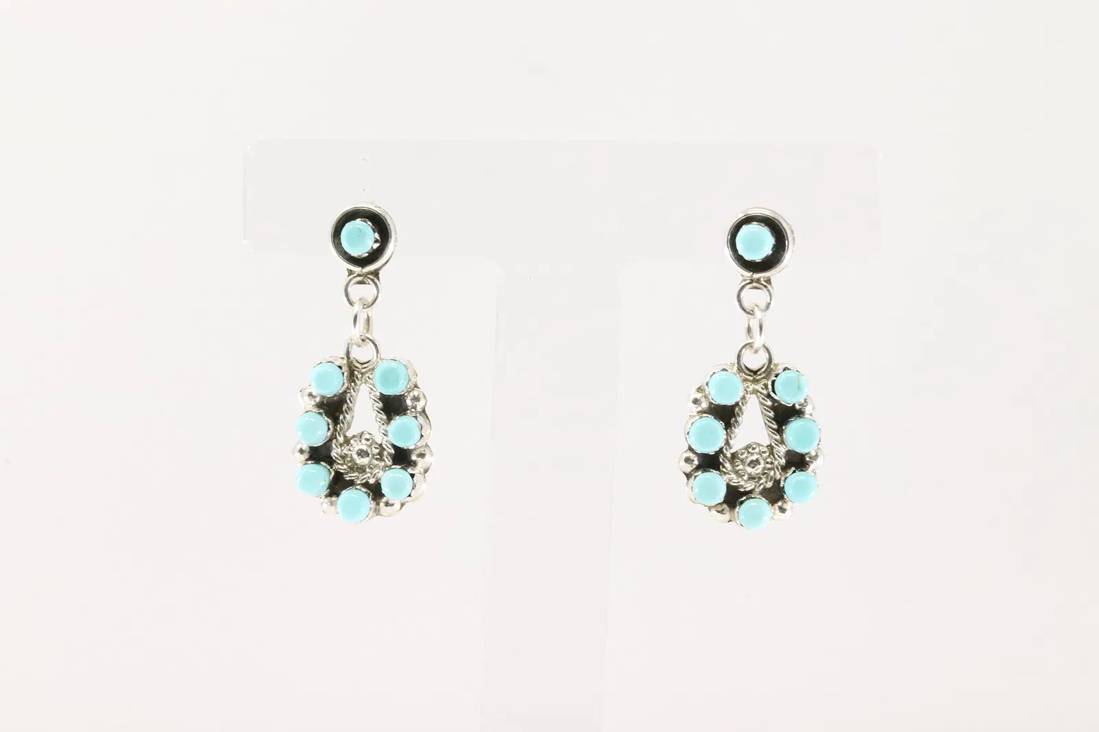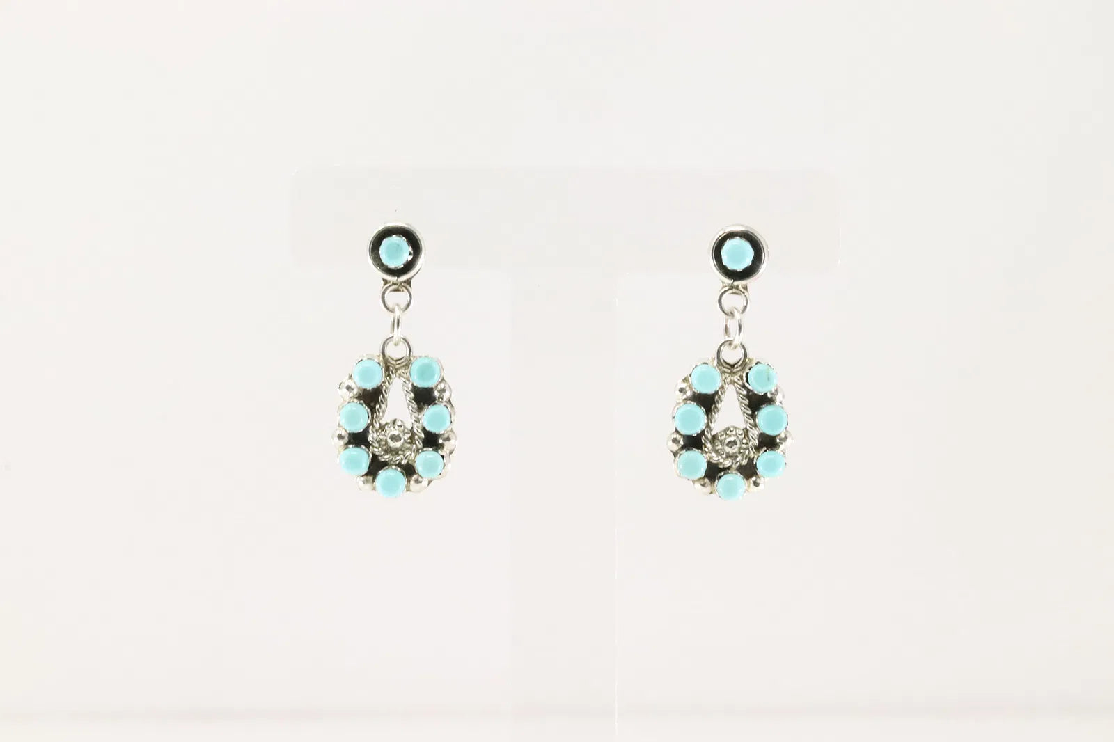 Native American Zuni Sterling Silver Turquoise Post / Dangling Earring's Signed By Lynette Laate