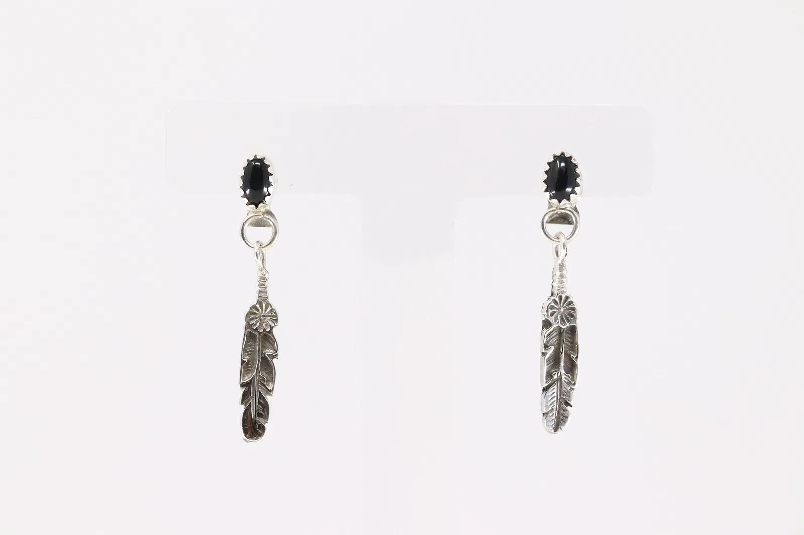 Sterling Silver and Onyx Feather Earring by Navajo Artist Largo