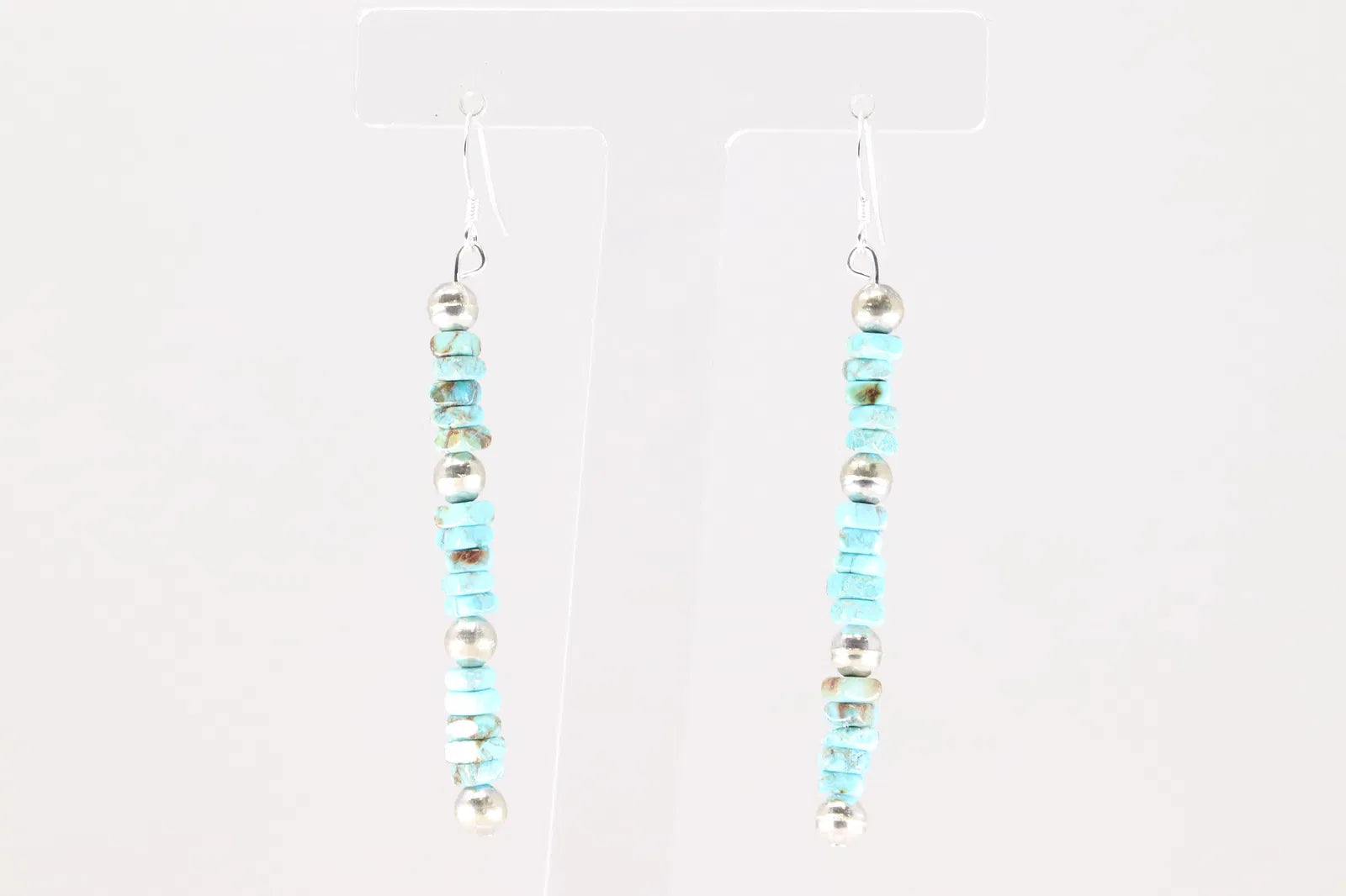Native American Navajo Sterling Silver Turquoise / Pearl Beaded Dangling Earrings