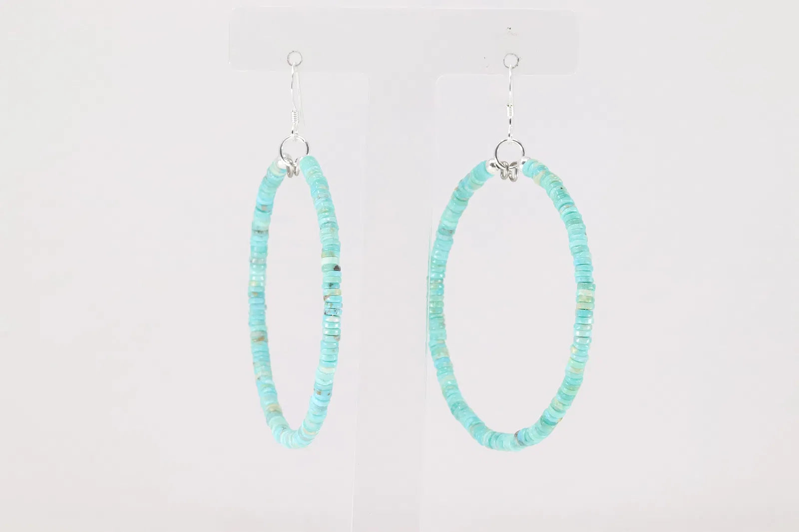 Native American Navajo Sterling Silver Turquoise Hoop Dangling Earring