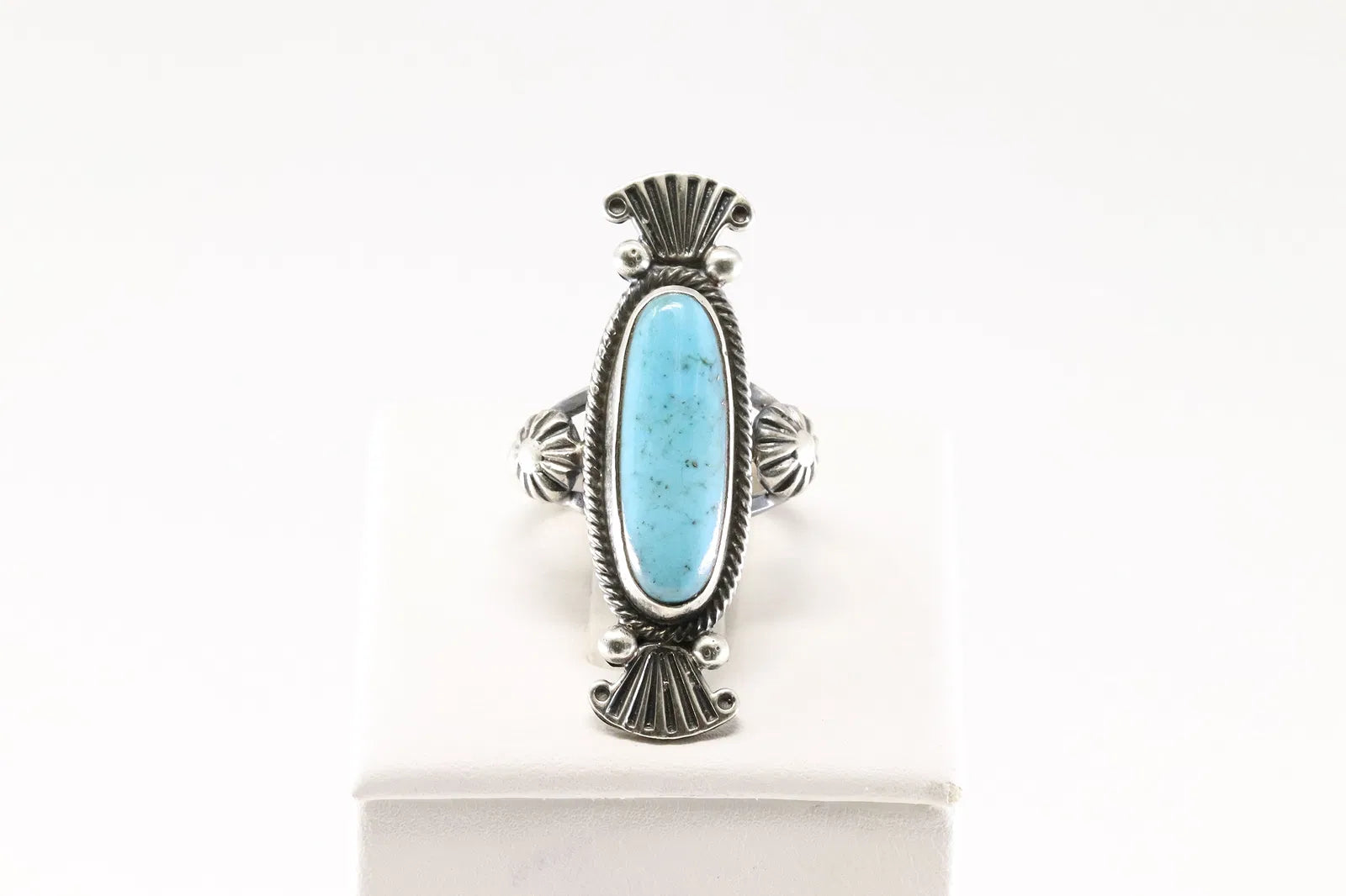 Native American Navajo Sterling Silver Turquoise Ring By Maritta Benally. Ring size: 7.00