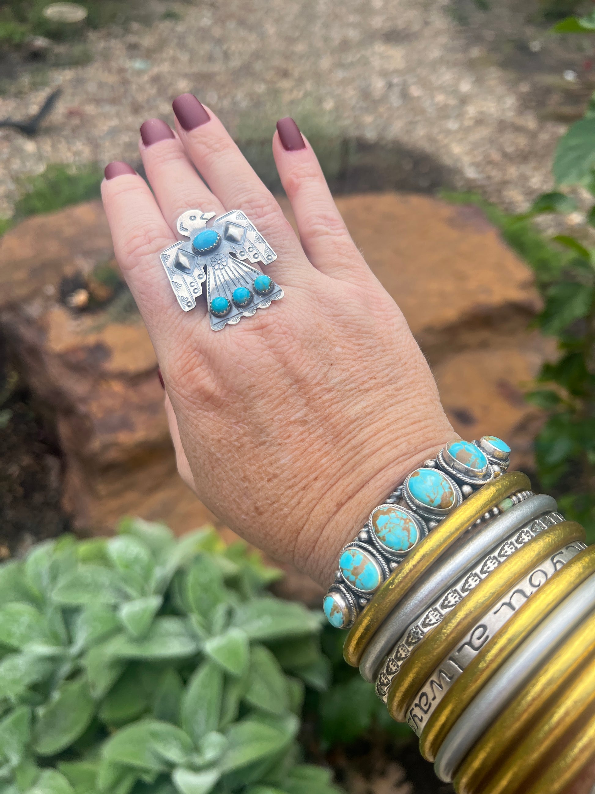 Native American Turquoise Thunderbird Adjustable ring by Gabriella Yazzie