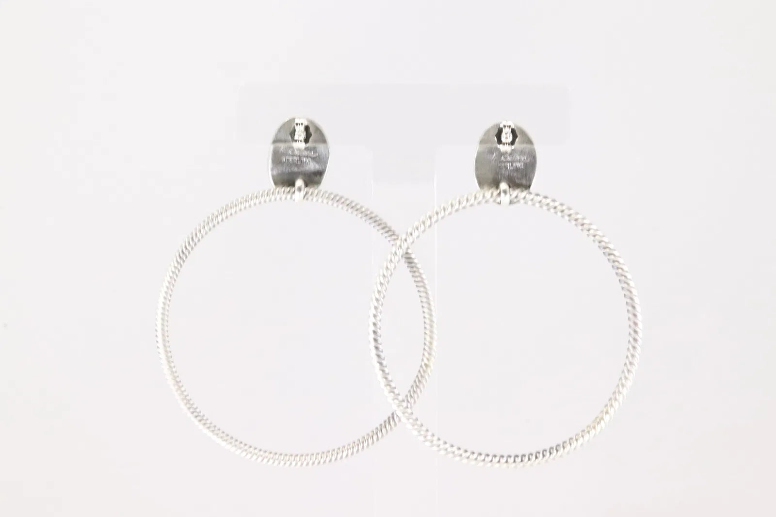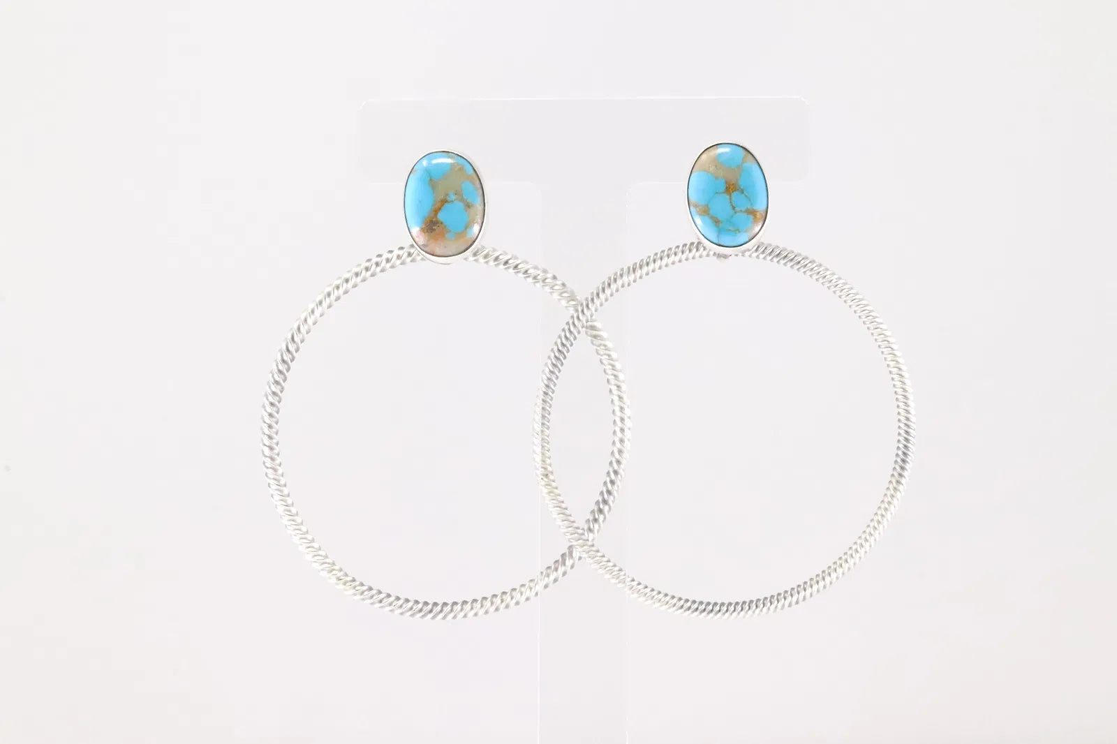 Twisted Rope Hoop Earrings with Turquoise Stone by Navajo Artist Verley Betone